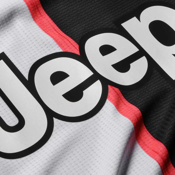 Trên hết, có một dải màu hồng giữa hai nửa ở mặt trước của bộ sân nhà Juventus 19-20.