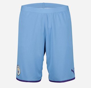 Quần short trắng và vớ xanh hoàn thành bộ đồ nhà Manchester City 2019-20. Quần short màu xanh thay thế có sẵn trong trường hợp đụng độ.